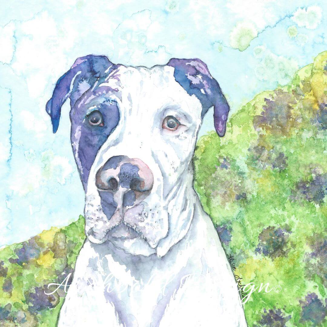 Our Great Dane card featuring Sparrow is an original artwork by Australian Artist Alison Archbold, from Archbold Design.